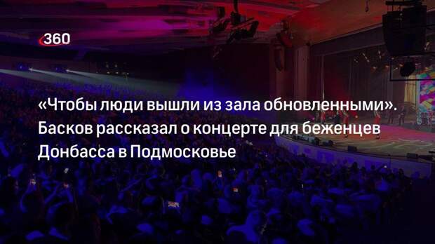 Источник фото: телеканал «360» «У меня есть своя позиция: я поступил по совести. Я всегда любил только одну страну — это Россия. У меня никогда не было недвижимости за границей, <…> у меня нет западных счетов, у меня нет второго гражданства. Я просто российский житель. Я русский и не представляю другого места, где бы я мог находиться кроме своей Родины», — подчеркнул певец. Он добавил, что его так воспитали родители. Певец напомнил, что его отец был военным и, благодаря нему, уже с 1990 года будущий Народный певец начал интересоваться политикой и историей. «Поэтому мое выступления в поддержку спецоперации было осознанным», — подчеркнул певец. Концерт Николая Баскова и Полины Гагариной для беженцев из Донецкой и Луганской народных республик прошел в Доме правительства Московской области. Первым к собравшимся зрителям обратился губернатор Московской области Андрей Воробьев. Источник фото: телеканал «360» Он отметил, что инициатором концерта стал Николай Басков, который пригласил для выступления Полину Гагарину. «Наша встреча проходит благодаря человеку, который очень неравнодушен. Таких людей в наших странах миллионы и миллионы», — подчеркнул он. Андрей Воробьев заявил, что власти региона сделали все, чтобы жители Донбасса чувствовали теплоту и заботу в это тяжелое время. «Мы очень надеемся, что все закончится и воцарится мир. Мы делаем все, для того, чтобы русский человек, наша страна, была на мировой арене сильной, и вместе с тем не позволяем, чтобы нас как-то ущемляли», — добавил он. Губернатор Подмосковья пожелал беженцам вернуться в свои дома, теплее и роднее которых нет.